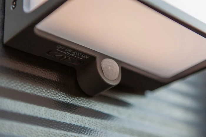 - Mit Bewegungsmelder an der Leuchte (Erfassungswinkel: 120°, Reichweite bis ca. 10 m)