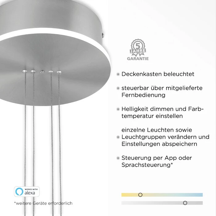 - Mit Fernbedienung zum Dimmen und Einstellen der Farbtemperatur (2.700 -5.000 Kelvin) oder per App steuerbar